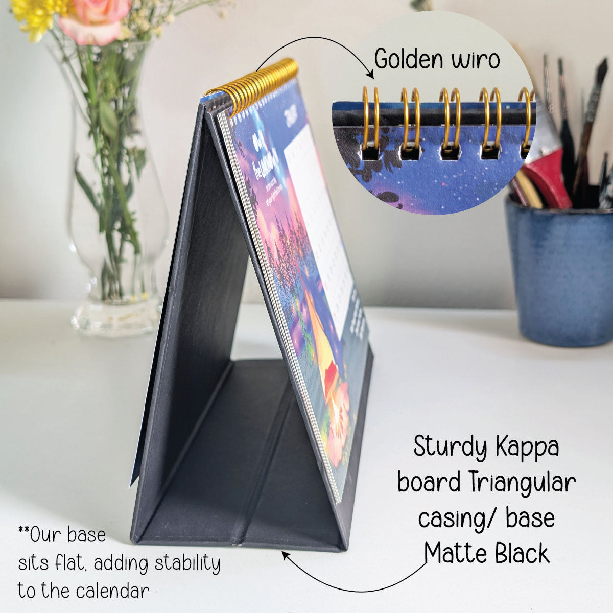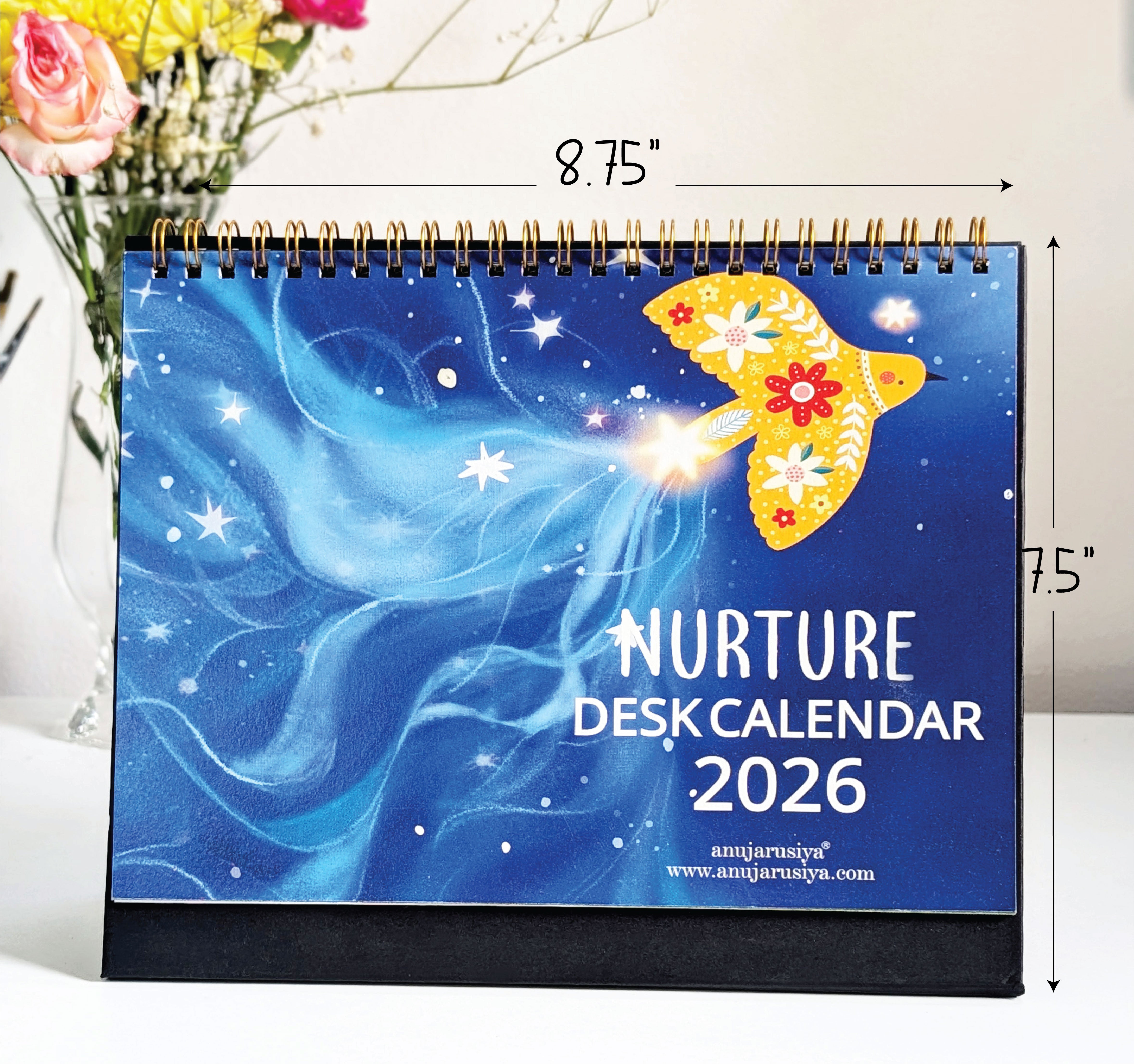 Nurture Desk Calendar 2026 | Original handpainted Whimsical artworks | Premium Craftmanship | Imported Paper | Golden Wiro | Bonus 50+ stickers for journaling