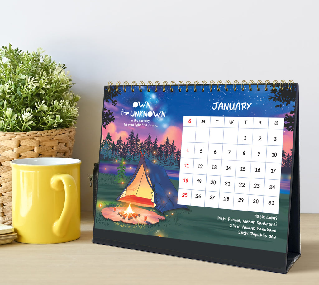 📅 Complete Year View with Holidays — All Indian and international holidays are neatly marked under each date section for easy planning.